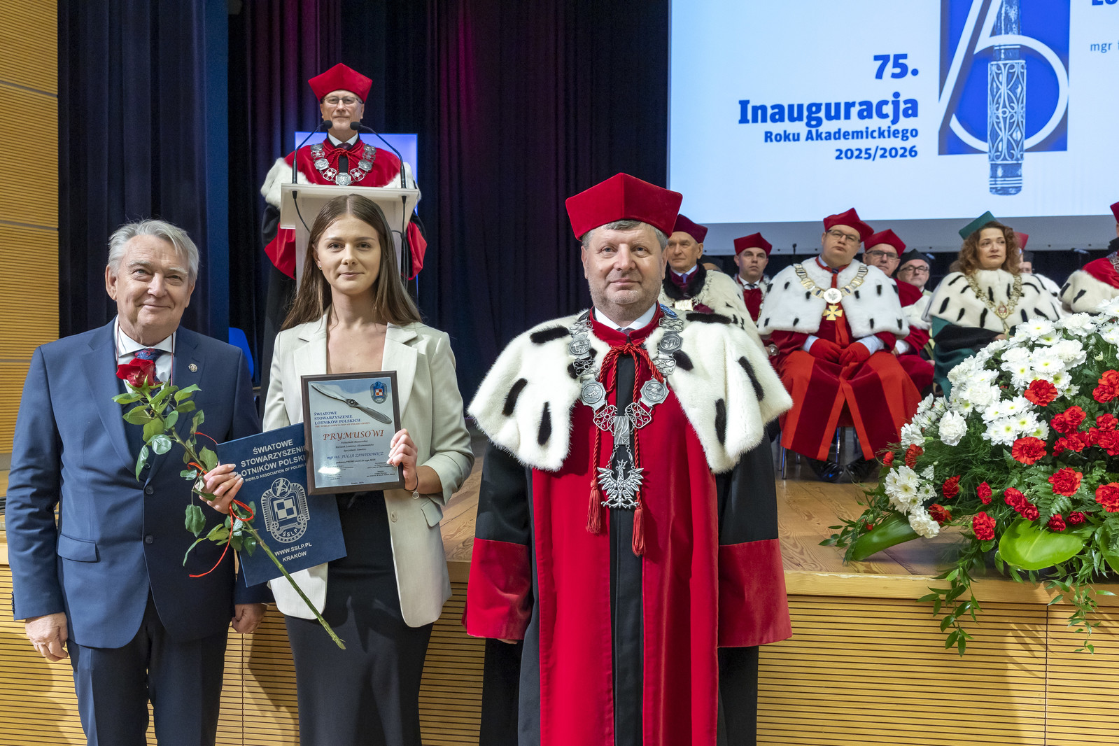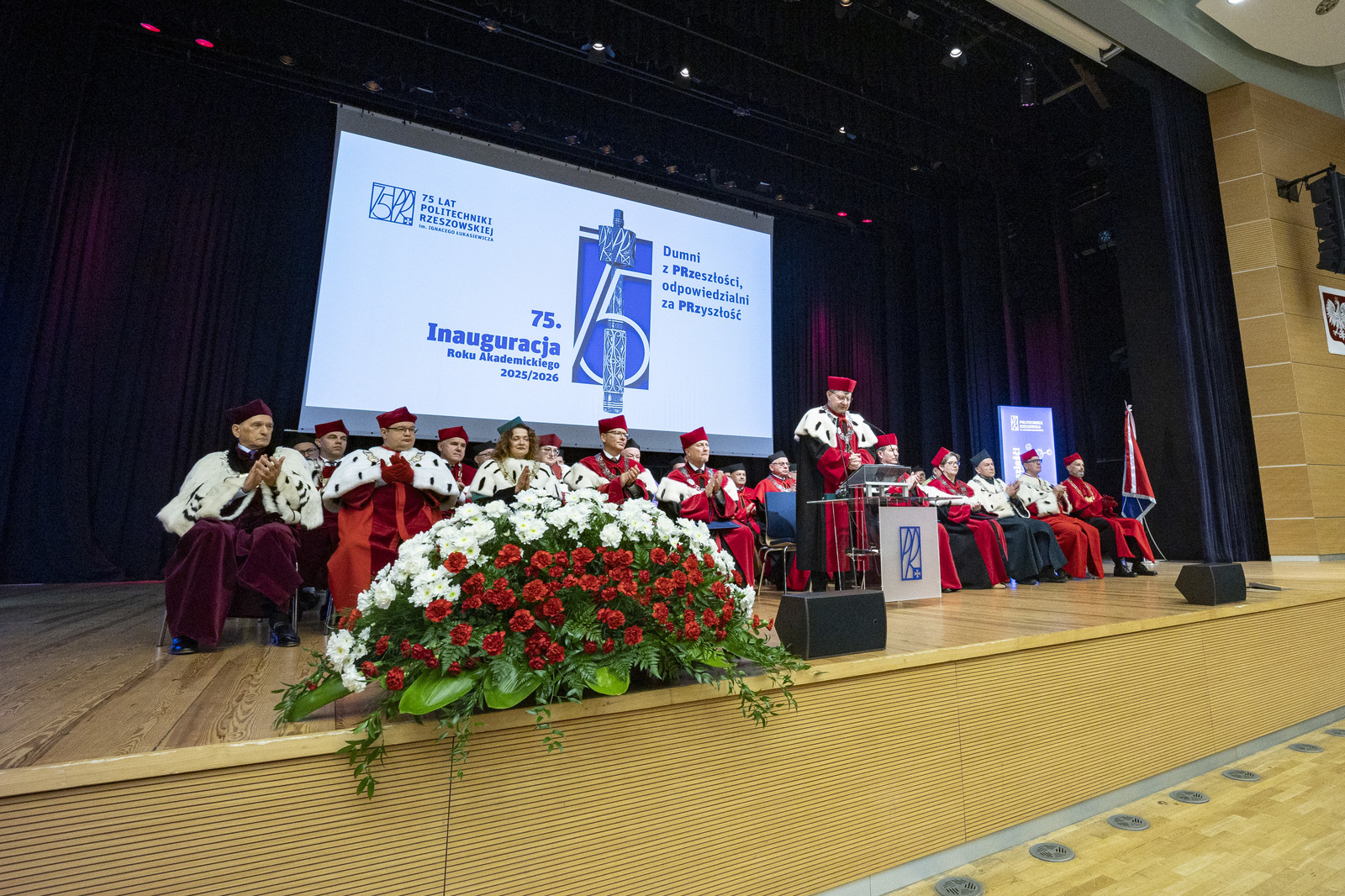 „Inauguracja roku akademickiego to nie tylko uroczystość, to także moment refleksji nad tym, czym jest uczelnia, kim jesteśmy jako jej członkowie i dokąd zmierzamy. W świecie pełnym niepewności uczelnia pozostaje jednym z ostatnich bastionów racjonalności, otwartości i dialogu. To nasza odpowiedzialność – chronić te wartości i przekazywać je kolejnym pokoleniom” – mówił rektor prof. Piotr Koszelnik podczas przemówienia inaugurującego jubileuszowy 75. rok akademicki na Politechnice Rzeszowskiej.