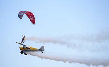 Po raz pierwszy na świecie mistrz świata w lotach motoparalotnią Wojciech Bógdał wykona lot akrobacyjny, który będzie polegał na tym, że usiądzie na skrzydle lecącego samolotu.