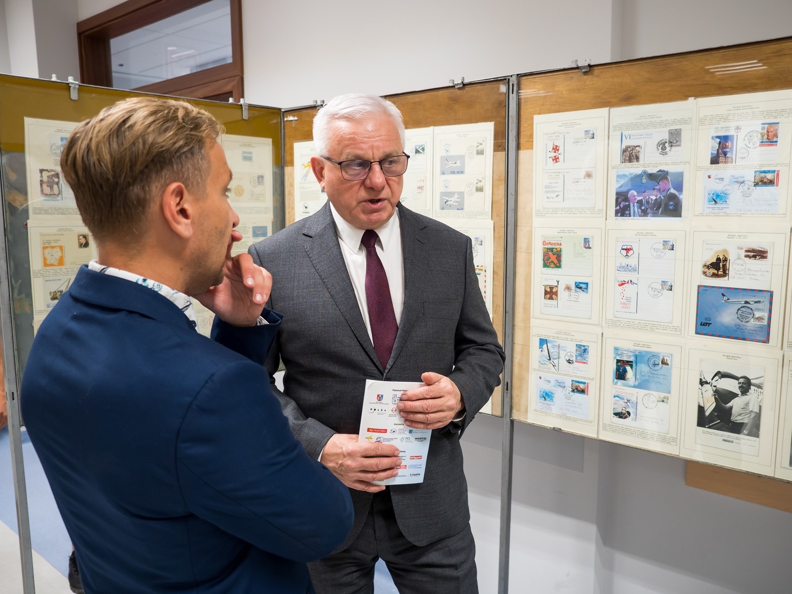 Wystawa Filatelistyczna pt. „Lotnictwo i kosmos. Podróż w przestrzeń”. Od lewej: prof. PRz A. Marciniec i dr inż. A. Masłoń,