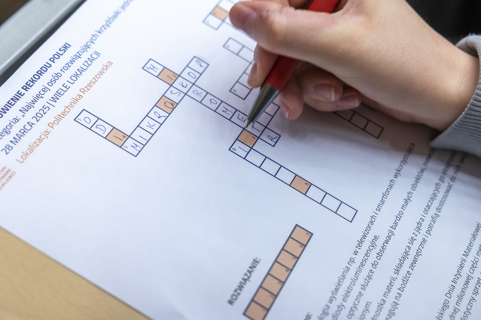 Na Politechnice Rzeszowskiej organizacji, podobnie jak w roku ubiegłym, podjęli się pracownicy Katedry Nauki o Materiałach oraz Laboratorium Badań Materiałów dla Przemysłu Lotniczego Wydziału Budowy Maszyn i Lotnictwa. Uczestników przywitali dziekan Wydziału Budowy Maszyn i Lotnictwa dr hab. inż. Adam Marciniec, prof. PRz oraz przewodniczący Rady Dyscypliny Inżynieria Materiałowa dr hab. inż. Maciej Motyka, prof. PRz. Następnie dr inż. Tadeusz Kubaszek wygłosił ciekawy wykład pt. „Czy materiały mogą mieć supermoce?”. Program obejmował także próbę ustanowienia rekordu Polski w kategorii „Najwięcej osób rozwiązujących krzyżówki jednocześnie (wiele lokalizacji)” – dla uczczenia 100-lecia ukazania się pierwszej polskiej krzyżówki w „Kurierze Warszawskim".