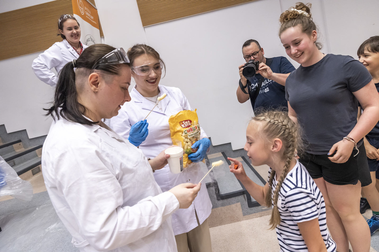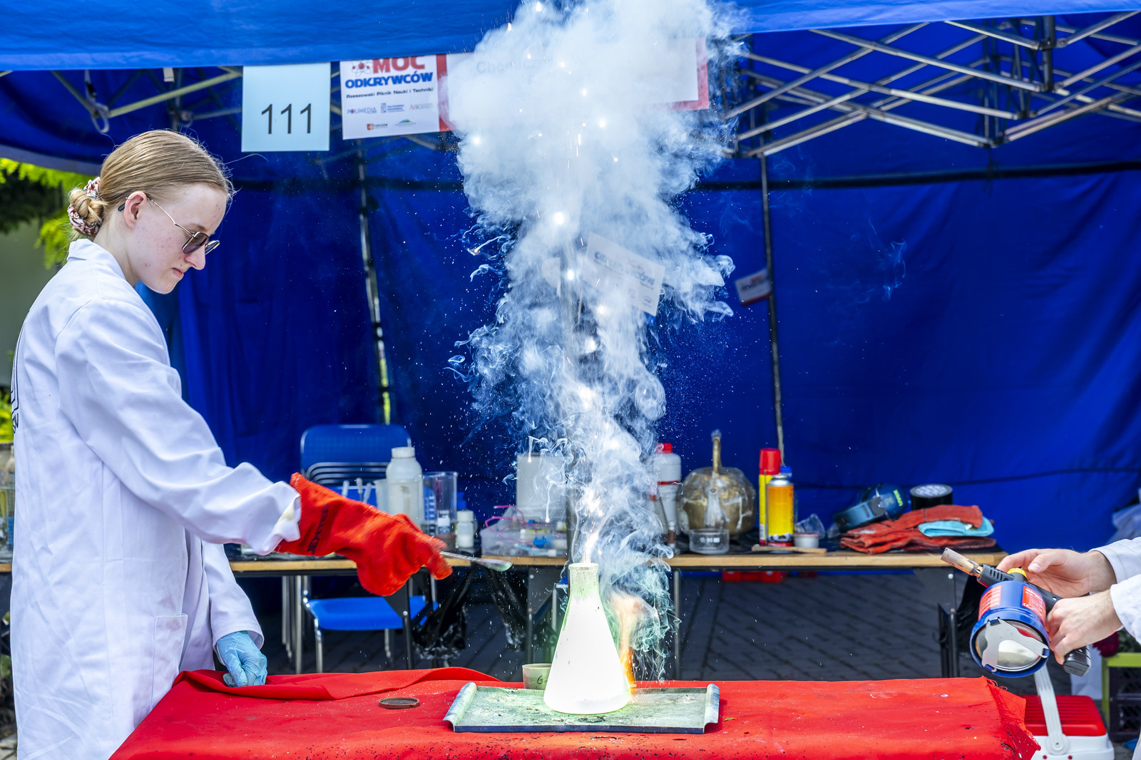 Na miłośników wybuchowych atrakcji czekali studenci Koła Naukowego „ESPRIT”, którzy przygotowali spektakularne pokazy chemiczne. Uczestnicy mogli również wysłuchać ciekawych wykładów –„Kosmiczną archeologię” opisywała Magdalena Ithilnar Stawniak, postać „Wyspiańskiego – Odkrywcy” przybliżyła Jolanta Bobala, a o „Prompt engineering, czyli jak dogadać się ze sztuczną inteligencją?” opowiedział Marcin Krawczyk. Mali i duzi odkrywcy spotkali się również z Magda „Cathia” Kozłowska zabrała małych i dużych odkrywców w podróż po galaktyce w ramach prelekcji nt. „Gwiezdnowojenna droga bohatera, czyli monomit w Gwiezdnych Wojnach”. Pokazy fizyczne Koła Naukowego FOTON („Jak fizyka wprawia świat w ruch”) oraz pokazy wysokich napięć i galeria lamp plazmowych Teslacoil jak zawsze przyciągnęły tłumy widzów. Na „Noc z gwiazdami”, czyli na finałowy pokaz pikniku zaprosili Małgosia Wilczak i Paweł Pasterz wraz z gościem specjalnym Maciejem Milczanowskim.