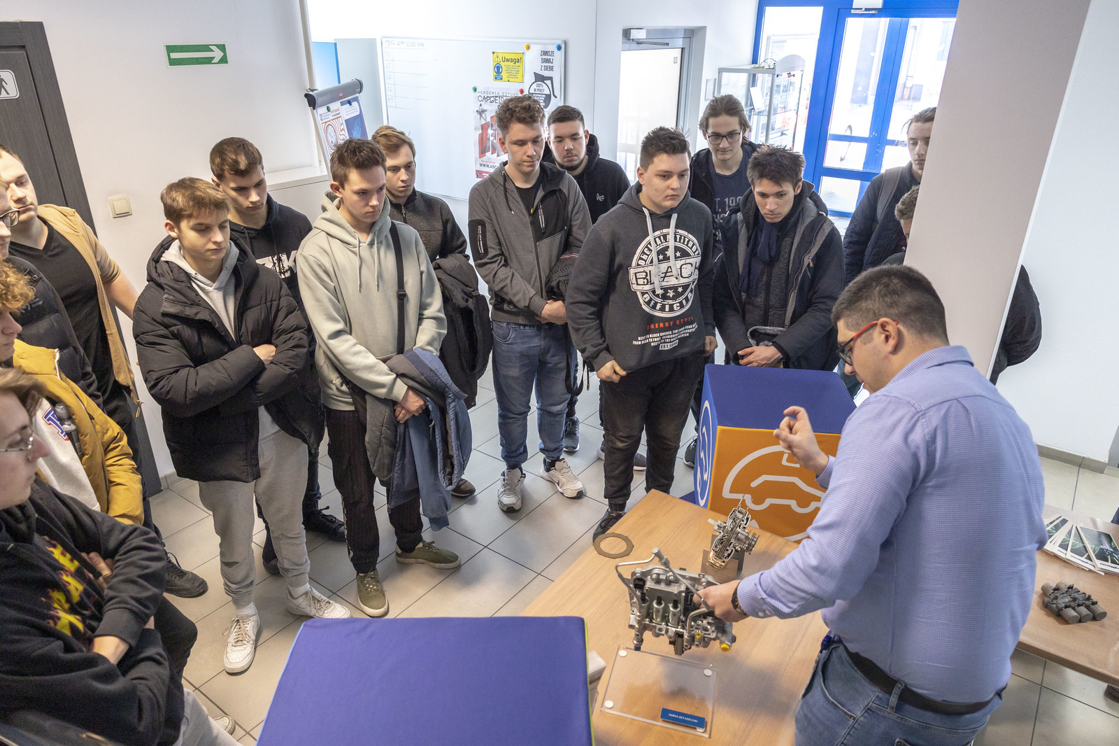 Organizatorzy zadbali również o możliwość kontaktu z przedstawicielami przemysłu. O znaczeniu inżynierii materiałowej dla przemysłu lotniczego czy motoryzacyjnego opowiedzieli absolwenci kierunku inżynieria materiałowa, obecnie pracownicy tak znanych firm, jak Pratt & Whitney Rzeszów czy BorgWarner Poland. Można było zobaczyć i dotknąć elementów konstrukcji silników lotniczych czy przekładni automatycznych stosowanych w nowoczesnych samochodach. Młodzież miała okazję dowiedzieć się, czym zajmują się inżynierowie materiałowi i na czym polega ich praca.