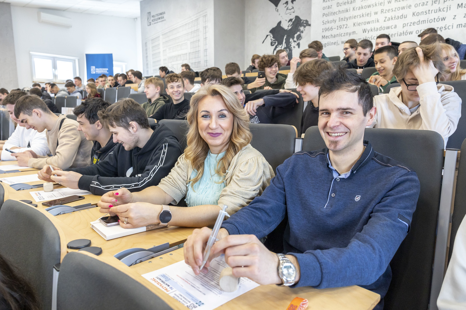Na Politechnice Rzeszowskiej organizacji Dnia Inżynierii Materiałowej podjęli się pracownicy Katedry Nauki o Materiałach na Wydziale Budowy Maszyn i Lotnictwa. Atrakcją tego dnia była próba ustanowienia rekordu Polski w największej lekcji inżynierii materiałowej prowadzonej równocześnie we wszystkich 15 jednostkach naukowych. Okolicznościową lekcję poprowadził dr hab. inż. Maciej Motyka, prof. PRz, którą rozpoczął krótkim wykładem „Materiały w rozwoju cywilizacji – od narzędzi kamiennych do komputerów”. Zgromadzona młodzież mogła się przekonać, że użycie materiałów przez człowieka odgrywało istotną rolę w rozwoju naszej cywilizacji – od czasów prehistorycznych aż po dzisiejsze, oraz jak odkrycia z tego obszaru kształtowały gospodarki i społeczeństwa na świecie. Lekcję zakończył sprawdzian z wiedzy teoretycznej oraz praktycznej dotyczący posługiwania się prostymi przyrządami inżynierskimi. W lekcji wzięło udział prawie stu uczniów z: Zespołu Szkół Samochodowych w Rzeszowie, IX Liceum Ogólnokształcącego w Rzeszowie, Społecznego Liceum Ogólnokształcącego z Zespołu Szkół Społecznych nr 2 w Rzeszowie oraz Zespołu Szkół Technicznych w Jaśle. Uczniowie mieli również okazję zwiedzić Uczelniane Laboratorium Badań Materiałów dla Przemysłu Lotniczego i zobaczyć nowoczesne urządzenia badawcze i technologiczne. Zorganizowano dla nich warsztaty, na których mogli się dowiedzieć, do czego służą wybrane technologie materiałowe, np. cięcie laserem, nawęglanie stali, natryskiwanie plazmowe czy druk 3D – a co najważniejsze, mogli zobaczyć, jak są realizowane.
