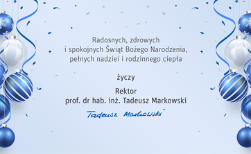 Najlepsze życzenia z okazji Świąt Bożego Narodzenia składa Rektor Politechniki Rzeszowskiej prof. dr hab. inż. Tadeusz Markowski.