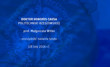 Prof. Małgorzata Witko doktorem honoris causa PRz. Zapraszamy na uroczystość...