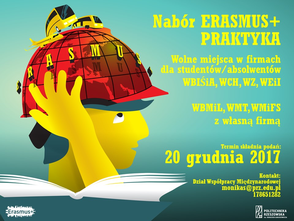 Termin składania podań upływa 20 grudnia. Podania należy składać wraz z odpowiednimi dokumentami. Zapisy prowadzi Dział Współpracy Międzynarodowej. Szczegółowe informacje można uzyskać pod adresem: monikas@prz.edu.pl lub numerem telefonu: 178651282.
