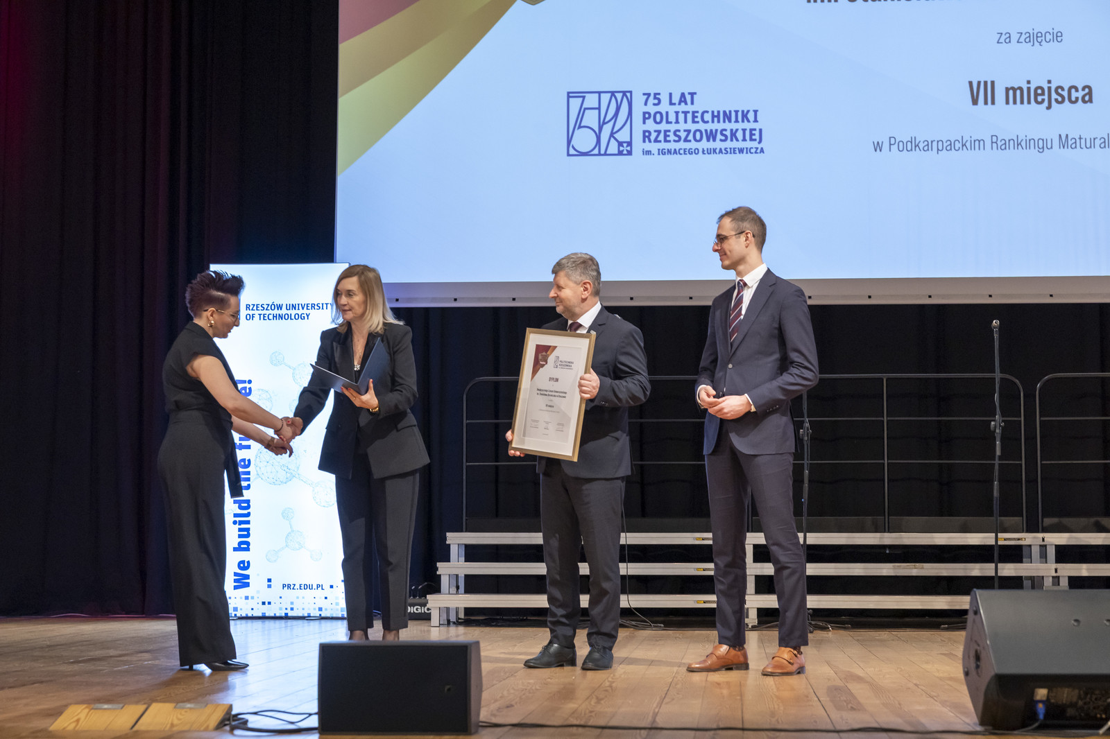 Na Politechnice Rzeszowskiej odbyła się uroczysta gala Podkarpackiego Rankingu Liceów i Techników Perspektywy 2026. Dyplomy i listy gratulacyjne przedstawicielom najlepszych szkół wręczyli rektor naszej uczelni prof. dr hab. inż. Piotr Koszelnik, podkarpacki kurator oświaty Dorota Nowak-Maluchnik i dyrektor operacyjny Perspektywy Press Bartosz Stawiarz.