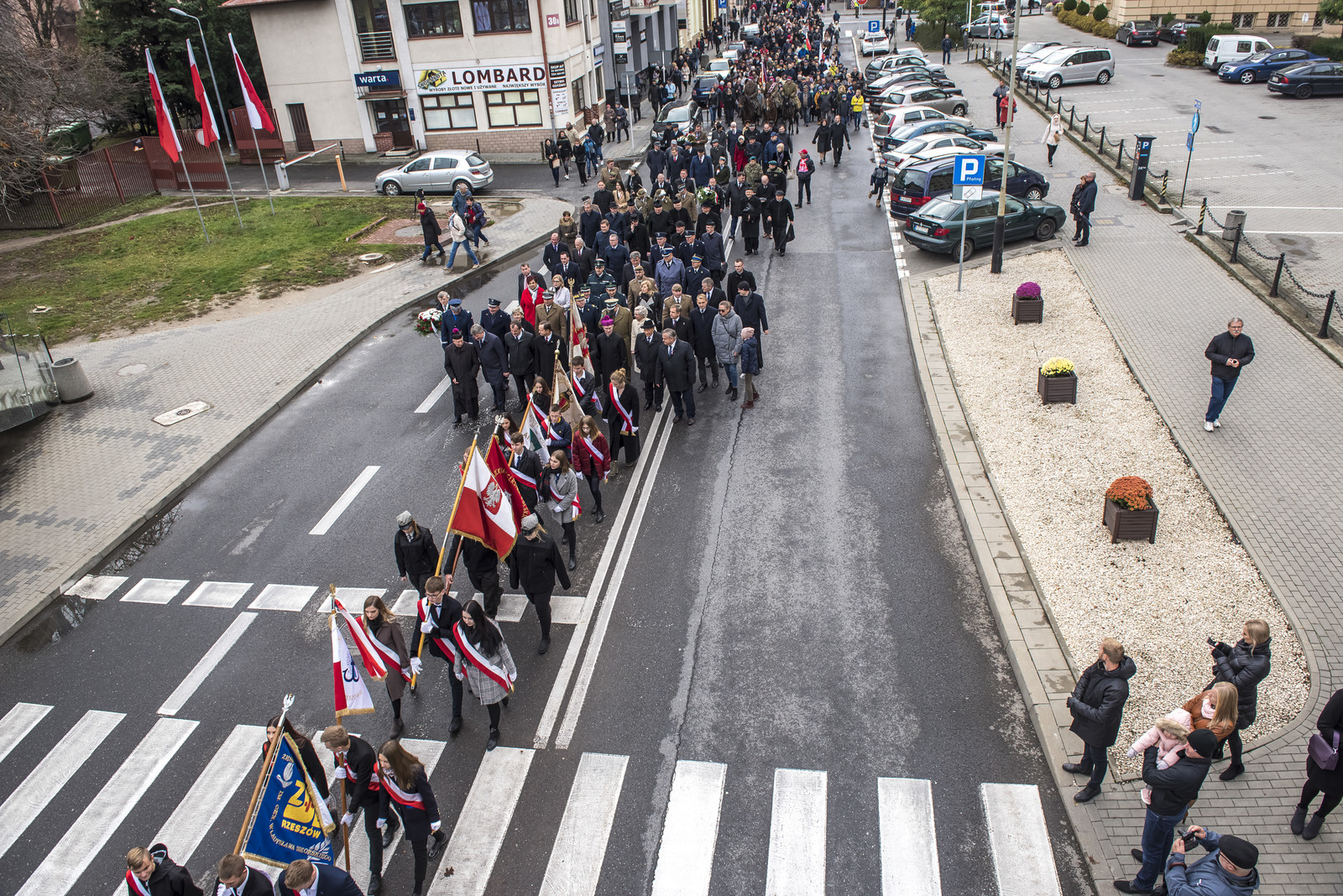 Następnie przedstawiciele władz wojewódzkich, reprezentacje uczelni wyższych, parlamentarzyści, kombatanci, żołnierze, mieszkańcy Rzeszowa i Podkarpacia zgromadzili się na Placu Wolności, gdzie kontynuowano uroczystość. Politechnikę Rzeszowską reprezentowali dr hab. inż. Grzegorz Masłowski, prof. PRz, Prorektor ds. kształcenia oraz mgr Andrzej Sowa, Kanclerz. Tam odbyło się złożenie meldunku dowódcy garnizonu Rzeszów i odśpiewano hymn narodowy. Kulminacyjnym punktem obchodów było odsłonięcie pomnika Marszałka Józefa Piłsudskiego.