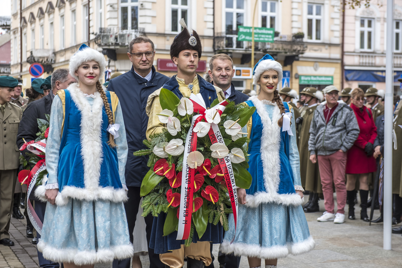 Uczestnicy uroczystości, w tym m.in. przedstawiciele władz województwa, służb mundurowych i różnych organizacji złożyli przed pomnikiem Marszałka Józefa Piłsudskiego wieńce i wiązanki kwiatów. W imieniu Politechniki Rzeszowskiej wieniec złożyli dr hab. inż. Grzegorz Masłowski, prof. PRz, Prorektor ds. kształcenia oraz mgr Andrzej Sowa, Kanclerz. Na zakończenie uroczystości odbył się apel pamięci i salwa honorowa.
