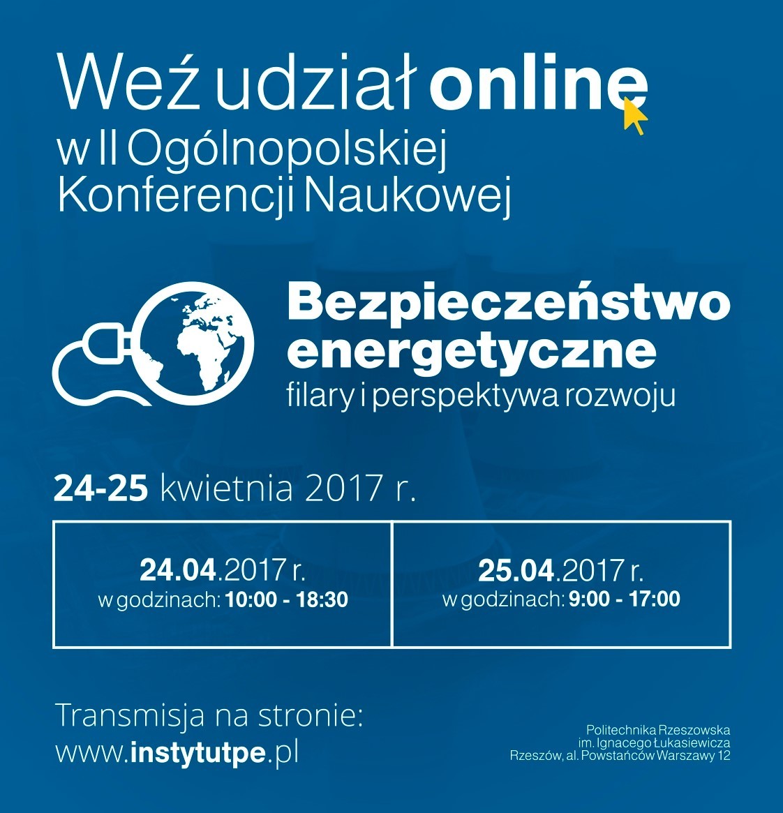 24 i 25 kwietnia br. na Politechnice Rzeszowskiej odbędzie II edycja cyklicznej ogólnopolskiej konferencji naukowej „Bezpieczeństwo energetyczne – filary i perspektywa rozwoju” organizowanej przez Katedrę Ekonomii Wydziału Zarządzania Politechniki Rzeszowskiej im. I. Łukasiewicza, Instytut Polityki Energetycznej im. I. Łukasiewicza oraz Studenckie Koło Naukowe „Eurointegracja”.